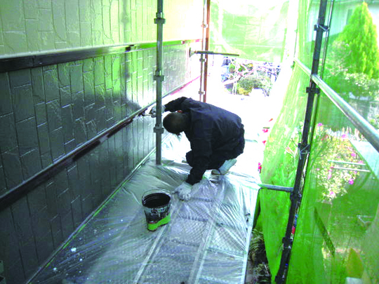 修理が終わったらいよいよペンキで塗装していきます。色あせていた壁が艶のある美しく丈夫な壁に変わります。
