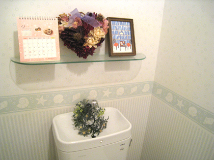 トイレは、旧式のためタンクに水がたくさん必要です。家族が多いので節水効果の高いタイプがご希望でした。季節感のあるインテリアを楽しめるコーナーもあればとのことでした。壁紙は汚れが目立ちます。便器の色も白がご希望です。床も古いクッションフロアなのでフローリングのようになればイメージアップしそうです。