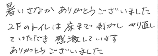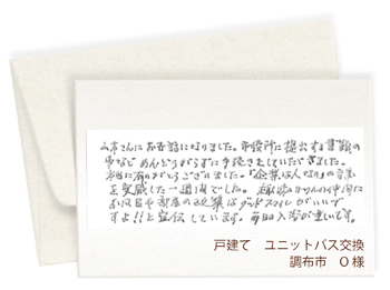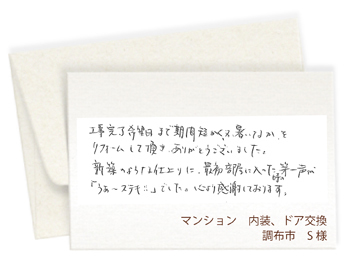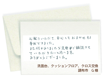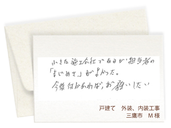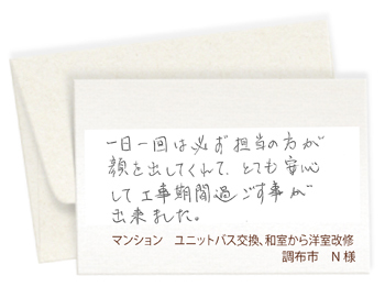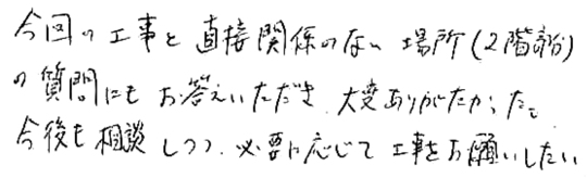 ここでは工事完了後、お客様から当社にいただいたメッセージをご紹介いたします。