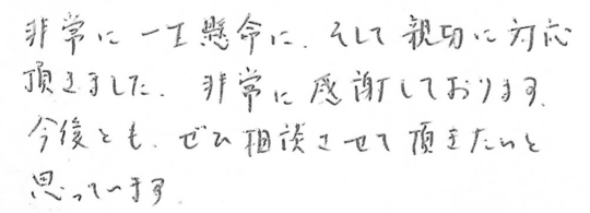 非常に一生懸命に、そして親切に対応頂きました。非常に感謝しております。今後とも、ぜひ相談させて頂きたいと思います。