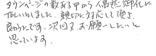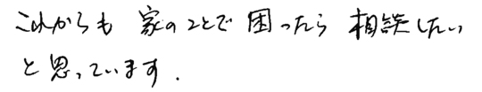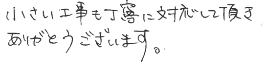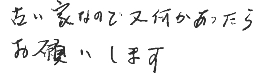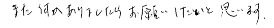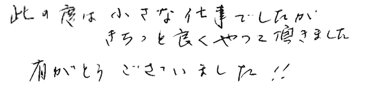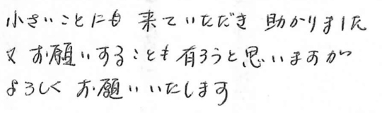 小さいことにも来ていただき助かりました。またお願いすることも有ろうと思いますがよろしくお願いいたします。