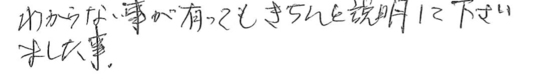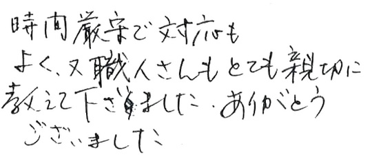 時間厳守で対応もよく、また職人さんもとても親切に教えて下さいました。ありがとうございました。