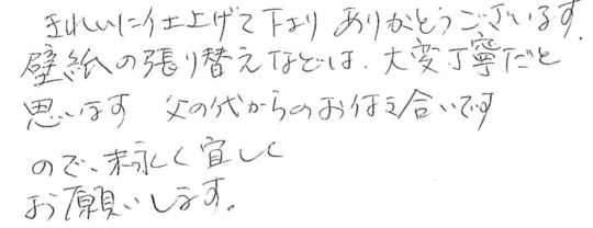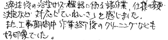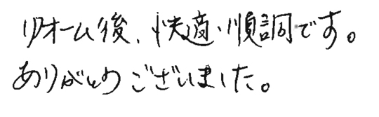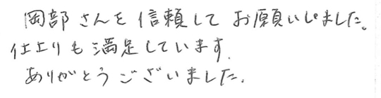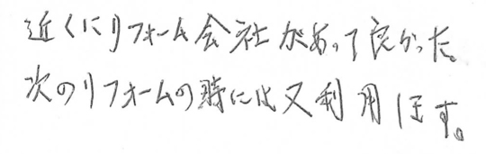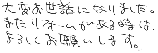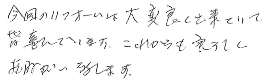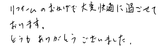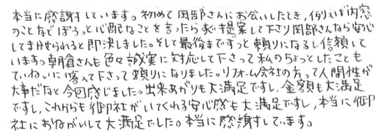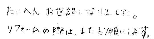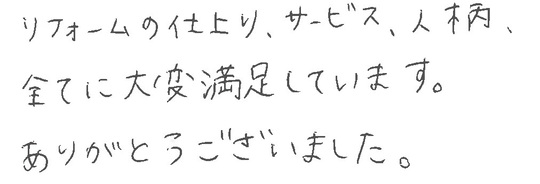 リフォームの仕上がり、サービス、人柄全てに大変満足しています。ありがとうございました。