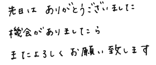 3〜4月のお忙しい時期だったにもかかわらずご対応いただき、また仕上りも想像以上のもので大変感謝しております。本当にありがとうございました。また次回も何かありましたらよろしくお願いいたします。