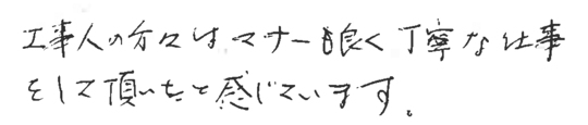 社長も工事担当者も職人さんも若くて真面目で仕事もていねいで信頼できました。何かあれば又おねがいしたいと思います。