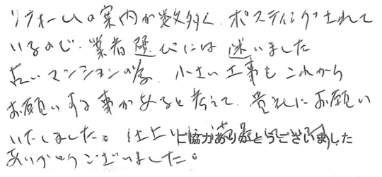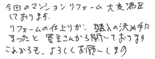 今回のマンションリフォーム大変満足しております。
