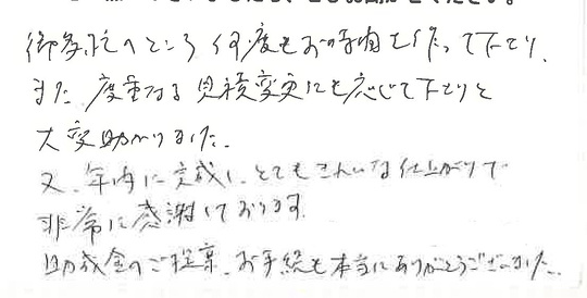 又、年内に完成し、とてもきれいな仕上りで非常に感謝しております。
