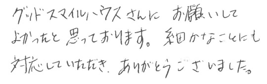 グッドスマイルハウスさんにお願いしてよかったと思っております。細かなことにも対応していただき、ありがとうございました。