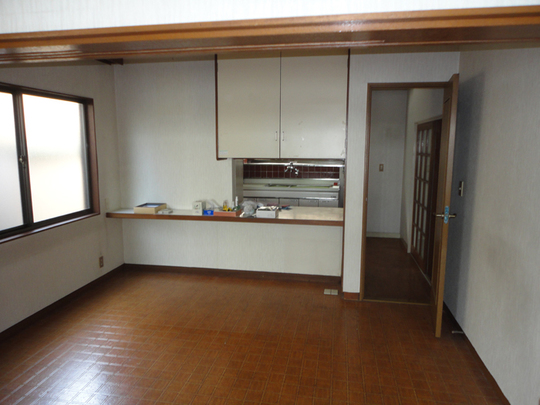 壁、床など経年の汚れが目立っていました。独立型キッチンとリビングの境に壁がありました。キッチンが暗く、リビングに開放感がありませんでした。