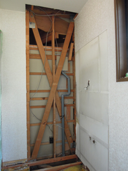 建物の壁を一部壊したことで、強度が不足するため他の壁を耐震補強しました。