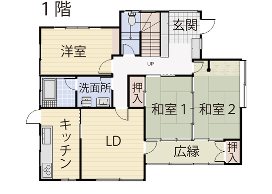 今まであまり使われていなかった和室2間や広縁を若世帯の広い生活スペースに、独立していたキッチンもみんなが集う明るいオープンなLDKに間取りを変えました。家族が増えた分、収納スペースも増やし、また誰にとっても安心なバリアフリーにしました。