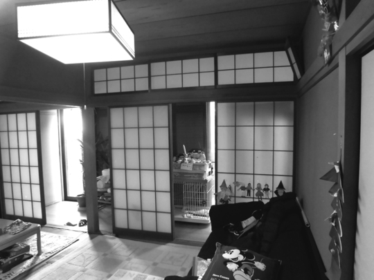 二間の和室と広縁をひとつの広い洋室に改装して、若世帯の居室にしました。子ども達がのびのび過ごせる広い空間です。床暖房も設置されていて、冬も暖かく遊べます。