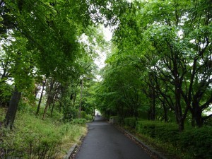 たくさんの樹々に囲まれていている坂道で、毎日四季の移り変わりを感じながら歩いています。私は一年の中で、新緑の今頃の時期と紅葉で木の葉が色づく時期にこの遊歩道を歩くことが大好きです。