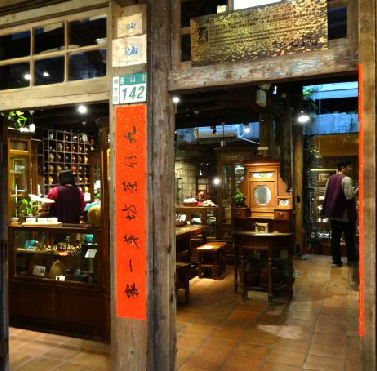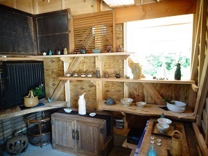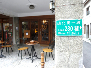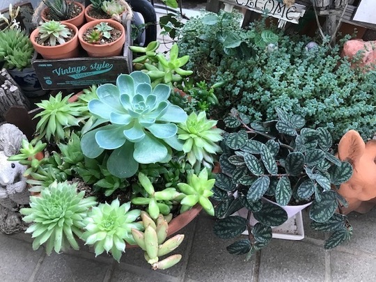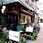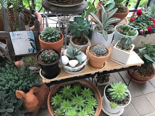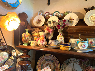 「郊外の隠れ家フレンチ」という感じの一軒家で、植物が茂る門を入ると別世界が現れました。こちらのオーナーは、ヨーロッパのアンティークの食器をたくさんコレクションしていて、お店の中はもちろん、外までフランスの蚤の市に来たように華やかな陶器が飾られています。