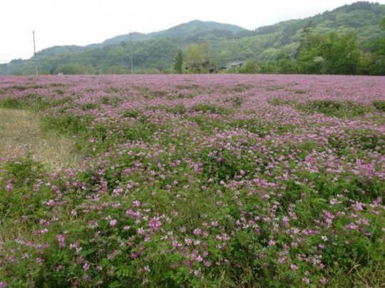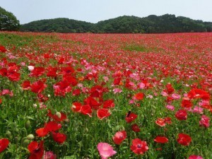 車を遠くに置いて、歩いて牧場にようやく到着。ここは標高500mと高く、まるで清里にでも来たかのようなさわやかさです。だんだん近づくとあたり一面見渡す限りの真っ赤なポピーのお花畑!青い空とのコントラストがそれはきれいでした。