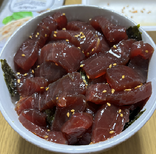 マグロの漬け丼を作りました。マグロはスーパーの安くなっていたものです。