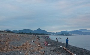 沼津港近くの浜辺でジグという鉛を小魚に似せてイナダやサバなどの小型青物を狙います。