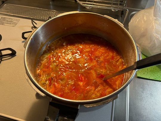 トマトがたっぷり入っているので酸味が強め。旨味は出ていますが、パンチが少し弱い印象です。