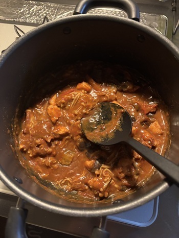 最初は「本当にこれでカレーになるの?」と思いましたが、意外とシャバシャバになりました。
