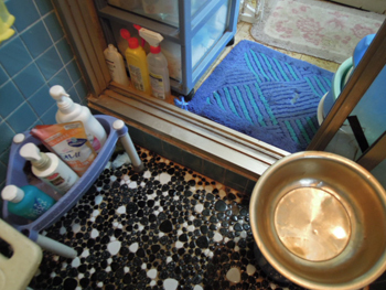 入口には段差があり、タイル張りの壁はお掃除が大変でした。