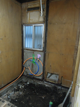 | 工事内容 | 浴室解体、搬出処分、間仕切り造作、床コンクリート工事、浴室組み立て、窓枠設置、電気・水道工事、手すり設置 |