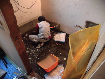 | 工事内容 | 浴室解体、搬出処分、断熱窓設置、床コンクリート工事、壁補修工事、浴室組み立て、電気・水道工事、給湯器移設工事 |