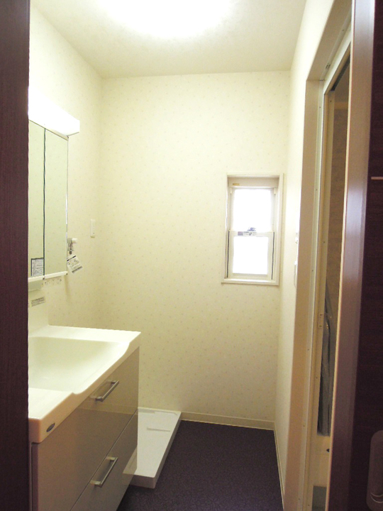 一般的には、浴室を洗面所側に広げた分、洗面スペースは、狭くなり使いにくくなります。今回は、間取りを工夫し、洗面台、洗濯機置き場の向きを変えることで、洗面台は広くすることができ、また収納量も増え、浴室も洗面所も共に使いやすくなりました。