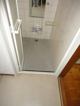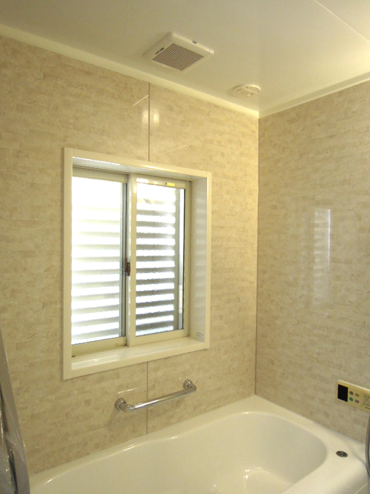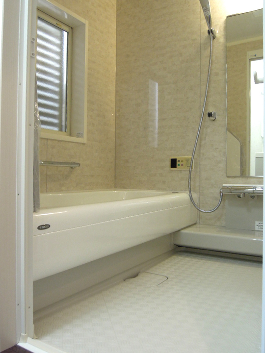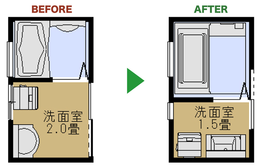 浴室が狭く、洗面所が広かったので隣接している間仕切り壁を移動して、洗面所を狭くし、浴室のスペースを広げました。