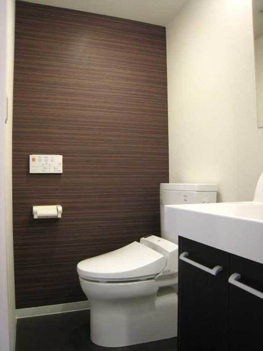 トイレは、上質なホテルのレストルームのような白いイメージでまとめられた高級感のある仕上がりです。