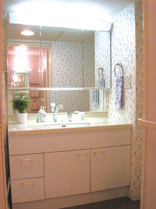 | 工事内容 | 解体・搬出処分、洗面化粧台組立・取付け、水道工事、壁クロス張り替え |