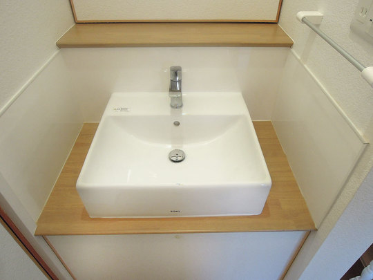 洗面ボウルは「ベッセル型」。「ベッセル型」とは、カウンターやキャビネットの上に器を設置したスタイルのことをいいます。