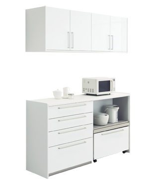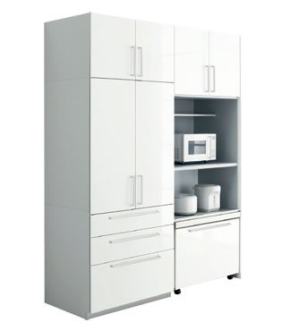キッチンとお揃いのデザインで周辺収納もリフォームすると、トータルコーディネートされた美しいキッチンになります。組み合わせが自由なので自分好みの使い勝手の良い収納が作れます。各社周辺収納も充実しています。