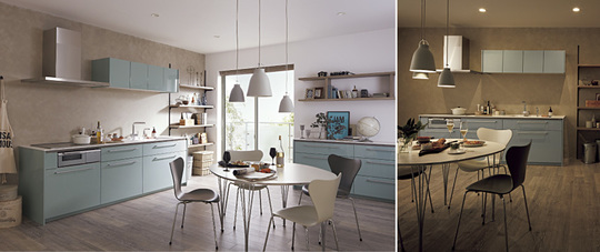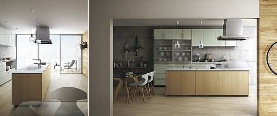 TOTOのシステムキッチンには、ミッテ(普及、中級ゾーン)とクラッソ(中級、高級ゾーン)の2種類を取り揃えています。