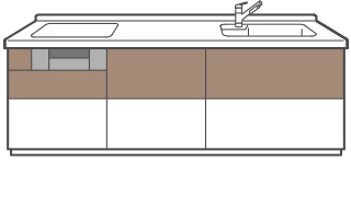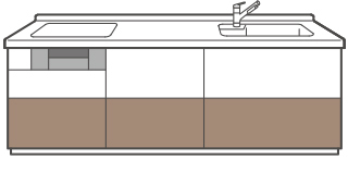 前面にカウンターや壁、上部には吊戸棚などが設置されている場合もあります。カウンターの前壁の高さを高くすることで手元が隠せ、また低くすることで開放感が出ます。最近では、前面に壁も収納もないフルフラット型のキッチンも人気です。