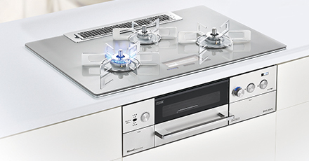 サイクロンフード(換気扇)やハイバックカウンター、シンクとカウンター一体型などお手入れし易い品揃えがあります。