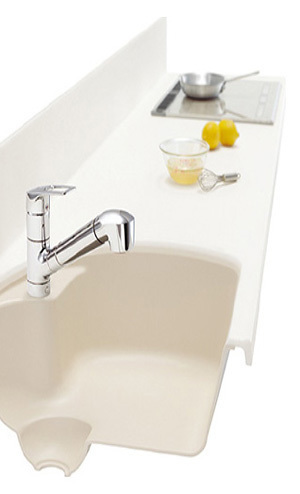 バックガードを高くしたことで、壁とのコーキングや段差をなくし、汚れがつきにくくなります。 トクラス「ハイバックカウンター」
