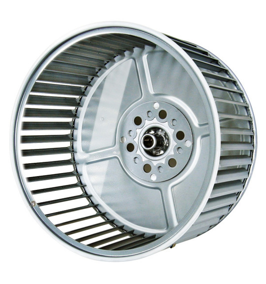 シロッコファンとは、筒状に縦長の細長い板状の羽根が並んでいるドラム型のファンのことです。多くのレンジフードの内部に設置されています。ファンを回転させ、遠心力で汚れた空気を吸込み、つながったダクトから屋外に排出します。