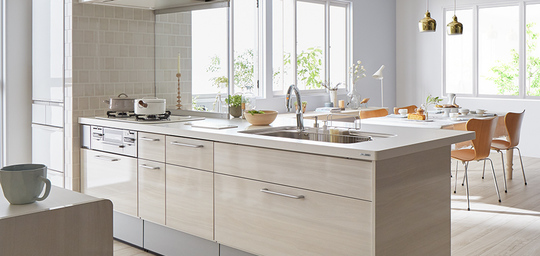 キッチンの間取り、シンク、調理台、収納などのレイアウトは、お住まいの状況、ご家族の構成、調理をする方のお好みにより考え方が変わります。レイアウトによる特長やデメリットについてお話しましょう。