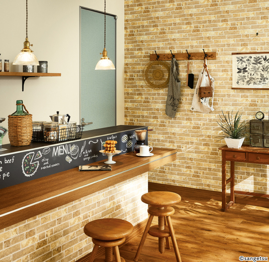 照明を消すと夜空のように光ったり、まるで本物の石や板、レンガなどを貼ったようにみえるクロスなど、最近は様々な工夫をされたクロスがあります。