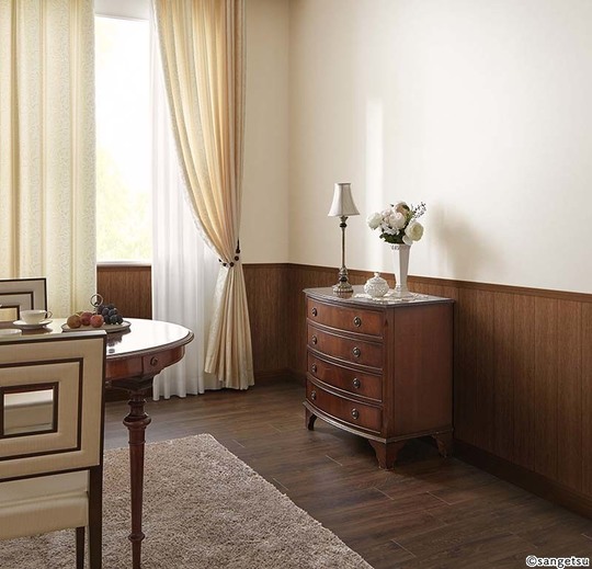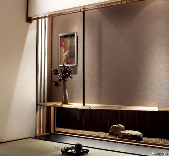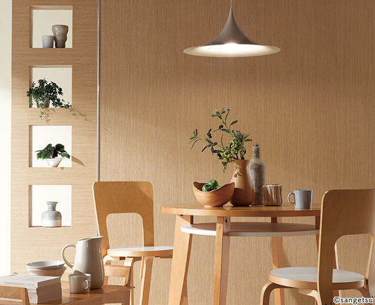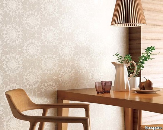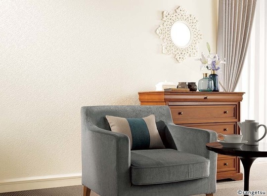 和室向きの落ち着きのある色や風合いのクロスも多くあります。一見塗り壁のようにみえるものや、織物のような雰囲気のものもあります。障子から差し込む光でテクスチュアが楽しめるクロスもすてきです。