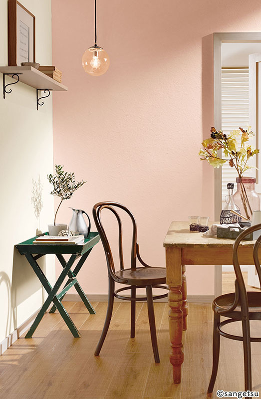 家族や友人が集うリビングは、広い空間を魅力的に演出できるスペースです。ソファなど大きな家具があるので、調度品に合ったシンプルな色がおすすめです。長い時間を過ごすスペースなので、ベージュや淡いピンクなどやさしい暖色系は気持ちが落ち着き温かみのあるお部屋になりおすすめです。また明るい色は部屋を広く見せます。一部の壁を柄物や色味の違うアクセントクロスを使うとおしゃれな雰囲気になります。
