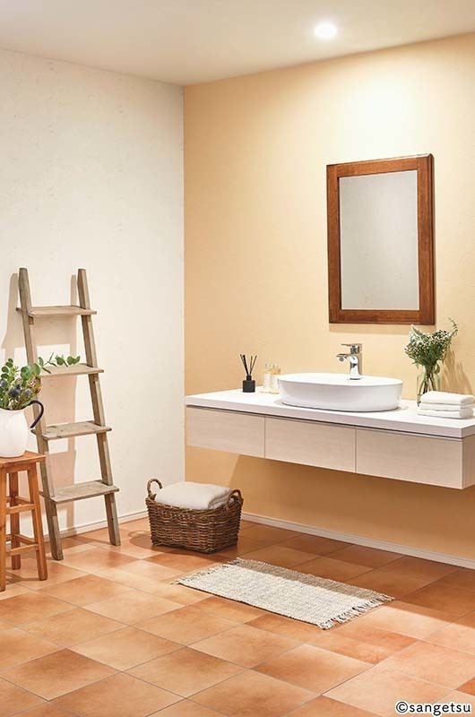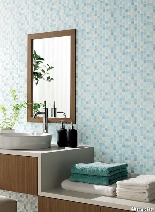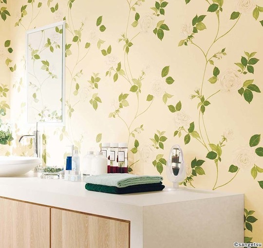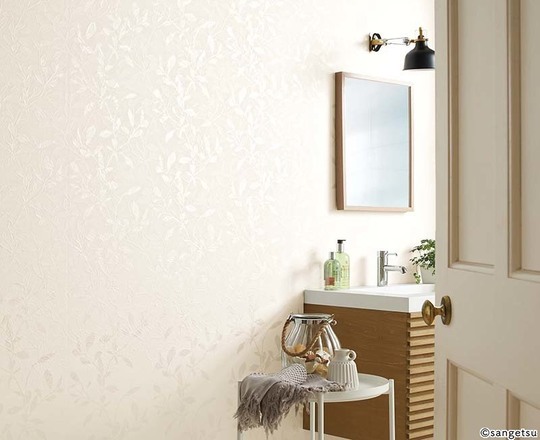 洗面所は清潔感が大切です。ホワイト系や爽やかな色がよく使われます。また水廻りなので、水はねなどに強いクロスがおすすめです。それほど広い空間ではないので、柄物などを思い切って楽しむのもいいものです。