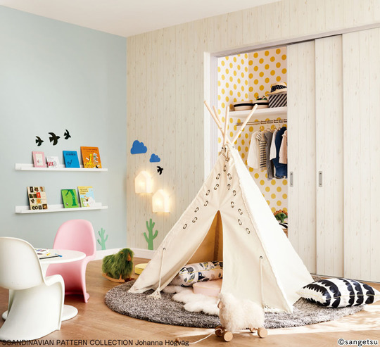 子ども部屋は、子ども達が楽しい気持ちですごせるような明るい色合いがいいでしょう。また汚れ防止のクロスを使うとお手入れが楽です。思い切ってポップな柄物を使ったり、暗くなると星などが輝くような遊びのあるクロスを使うのもおすすめです。