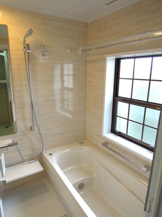 新しい浴室は、断熱効果の高いユニットバスです。壁はお手入れが楽なパネルに、床は滑りにくく温かい素材になりました。浴槽は、腰掛けがつき、保温性も高く冷めにくくなり、壁、浴槽には手すりもつき安全です。防寒のため、小窓をふさぎ、浴室が暖かくなりました。