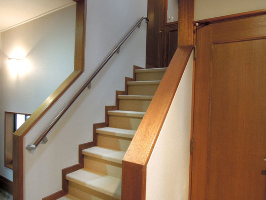 階段は、滑りにくいカーペットを貼りました。手すりを新しくつけたので、二階への昇降も安心です。