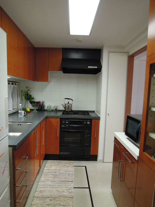 S様邸は、壁向きのキッチンの向きを今までと逆のリビング側に変えた ことで、リビングと一体感のある空間となりました。中古物件ご検討の時点からリフォームのご相談を受けていたので、このお住まいならば、LDKの構成を変えることで、より使いやすく、明るいお部屋になると思いご提案しました。S様のセンスが光るシャープなデザインのすてきなお住まいとなり喜んでいただきました。