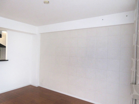 リビング正面の壁にはエコカラットを採用。天然石のような風合いで高級感が生まれます。湿気や匂いを吸収する機能がある壁材です。