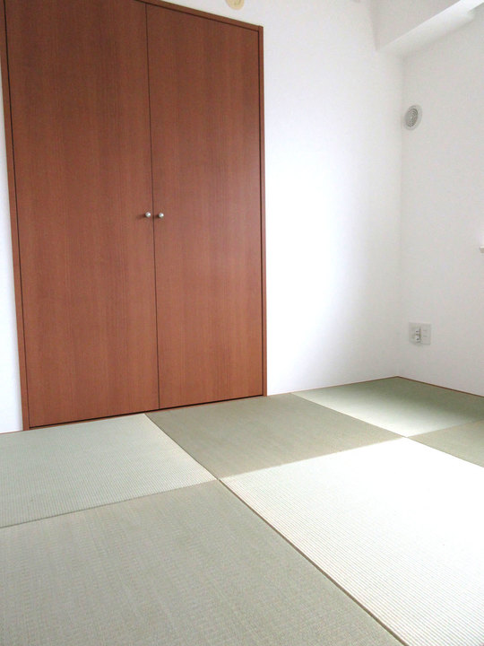 和室は、縁なしの畳を目の向きを交互に組んで市松に見せています。