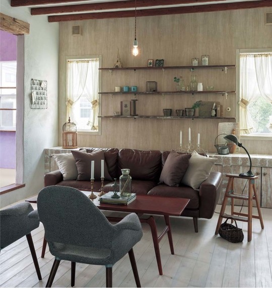 ヴィンテージとは、骨董ほどではない古道具のことをさします。古き良き時代を感じる深い色合いと木や鉄、革、レンガなどの味わいを活かした大人のインテリアが今注目のヴィンテージスタイルです。ちょっと辛口のテイストが男性にもファンが多い落ち着いたシックな雰囲気です。ブラウンやボルドー、ネイビーなどを基調にダークトーンで色をまとめるとすてきです。シンプルなインテリアもダークトーンでまとめると、シックな雰囲気になります。