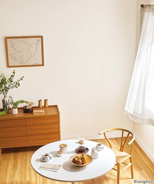 白やベージュ、薄い色など落ち着いた無地のカラーを基調としたシンプルなインテリアは、飽きのこない定番スタイルです。どのようなスタイルの家具にもマッチして、お部屋を広びろと感じさせてくれます。